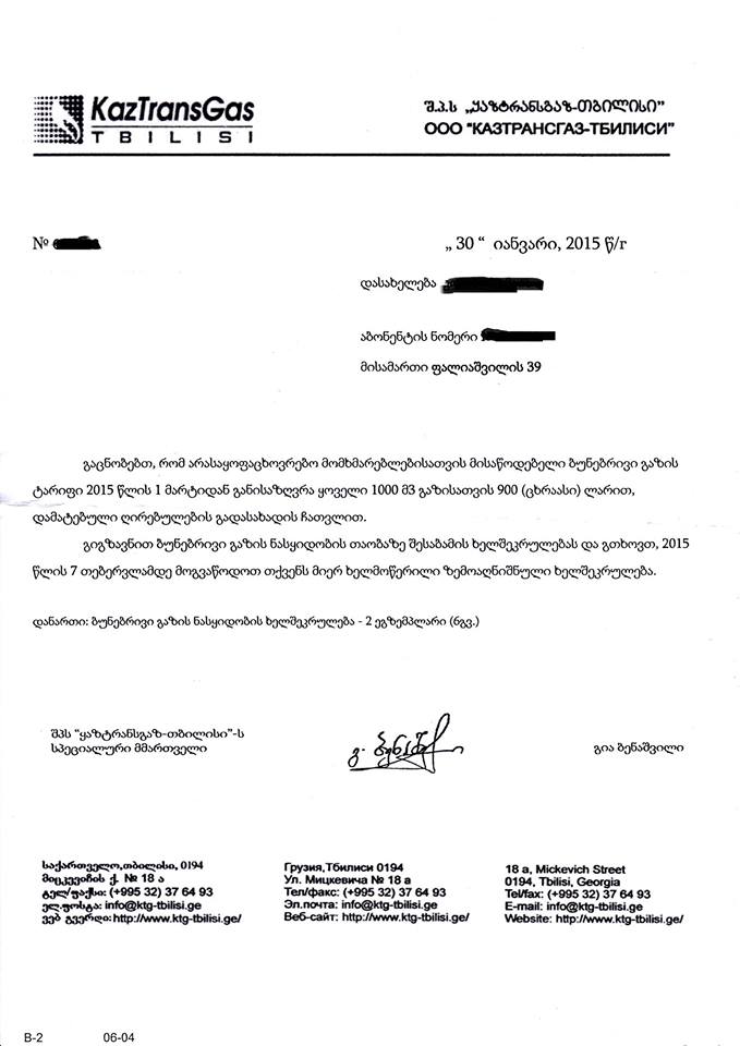 იურიდიული პირებისთვის ბუნებრივი აირის გადასახადმა მოიმატა, 75 თეთრიდან 90 თეთრამდე