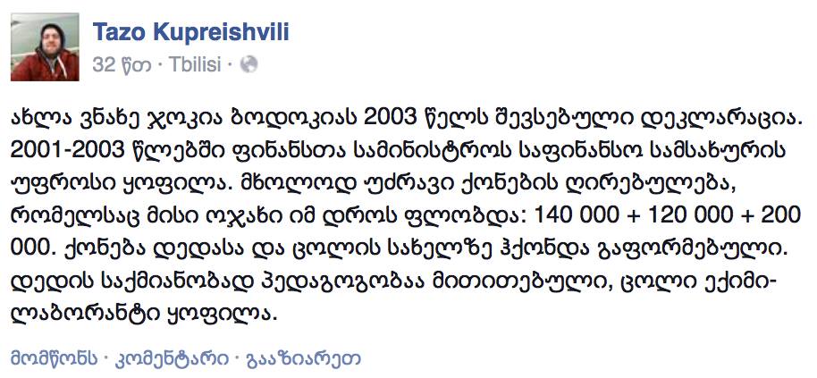 ჯოკია ბოდოკია დააკავეს, მერიის მაღალჩინოსანი ქრთამის