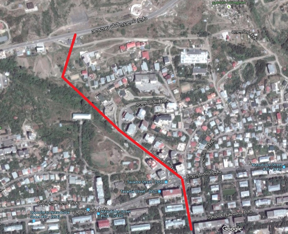 https://www.google.ge/maps/@41.8013312,44.7...1!1e3?hl=kaრეალურად ეს გზა უკვე არსებობს - ასფალტია მხოლოდ დასაგები