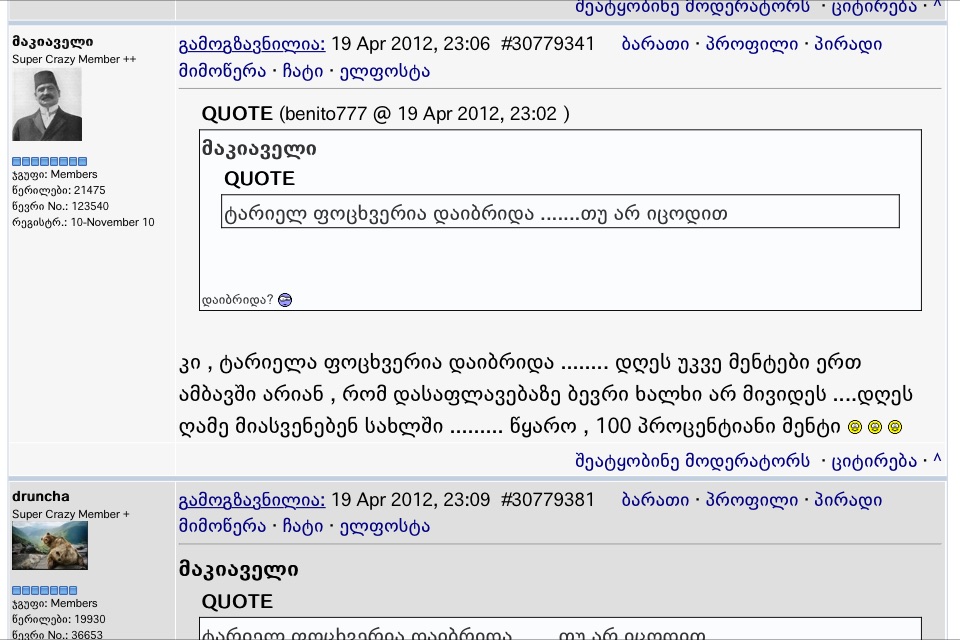 თორე მაგის დროს საერთოდ არ ვიცოდი მე ფორუმის არსებობა კაცო არც ვიცი ვინაა