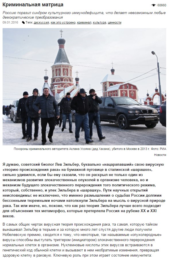 Россию поразил синдром культурного иммунодефицита, что делает невозможным любые демократические преобразования 09.01.2016