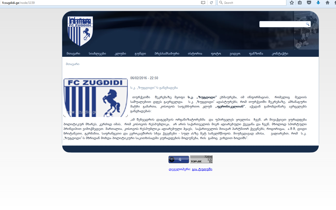 ბატონებო და ქალბატონებო როგორ ხართ მებადება ერთი კითხვა -იქნებ ამითი ამზადებენ ნიადაგს რომ შესაძლებელია ახლო მომავალში ჩატარდეს ამხანაგური აფხაზებთთან ან ოსებთან თუ განზრახვა ასეთია მე მივესალმები აღვადგინით კავშირურთიერთობები -და ყველამ ვიცით რომ ყველაზე ადვილად ეს შეიძლება სპორტით ან სპორული ასე რომ მომსვალი გვიჩვენებს ეს შეცდომა იყო თუ გამიზნული