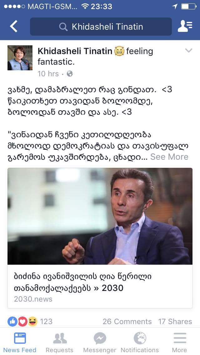 მანანა კობახიძეს ბიძინა ივანიშვილის ღია წერილმა, ილია ჭავჭავაძის პუბლიცისტიკა გაახსენა