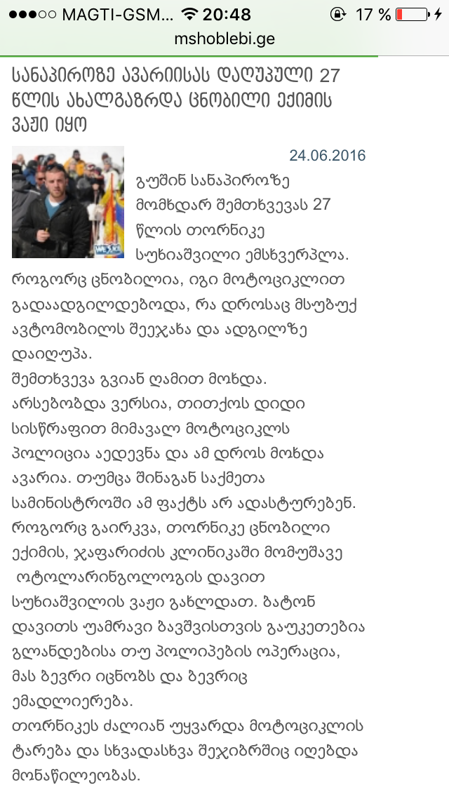 პატრულის დევნის შედეგად თბილიში მოზარდი მოტოციკლეტ, სამწუხარო ინფორმაცია