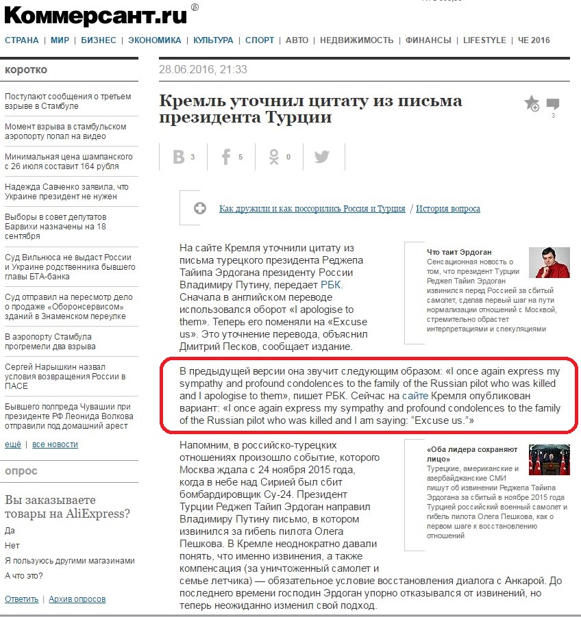 ერდოღანის "ბოდიში" რუსების ფანტაზიის ნაყოფი აღმოჩნდა