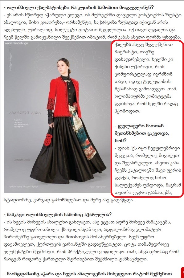 ქართველი ოლიმპიელების სამოსი, ვინ შეკერა?