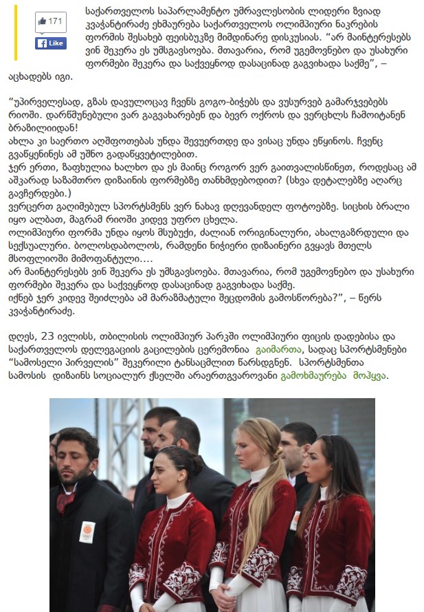 ქართველი ოლიმპიელების სამოსი, ვინ შეკერა?