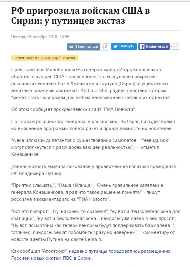 აშშ-ს სამხ. შტაბის უფროსმა განაცხადა რომ აშშ მზად, არის გაანადგუროს მტრები. აქცენტი რუსეთზე იქნა გაკეთებული