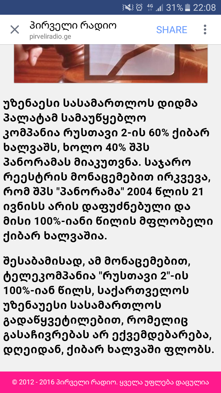 "რუსთავი 2"-ის ხელში ჩასაგდებად - ტელეკომპანია, უზენაესი სასამართლოს გადაწყვეტილების მოლოდინში
