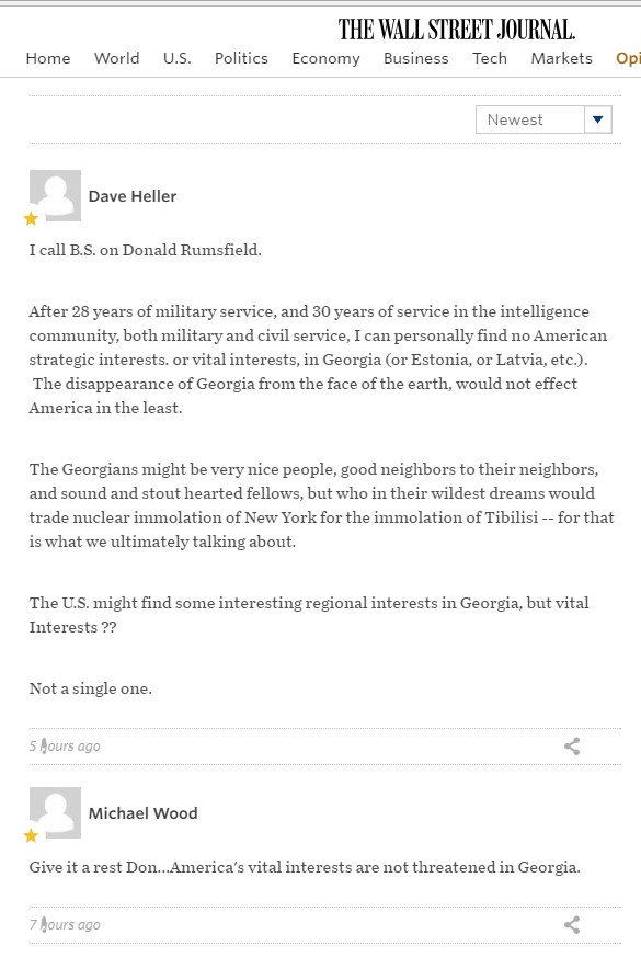 დონალდ რამსფელდი - აშშ მზად უნდა იყოს მიიღოს ზომებ, რათა რუსეთს საქართველოს ტერიტორიის ოკუპაცია ძვირი