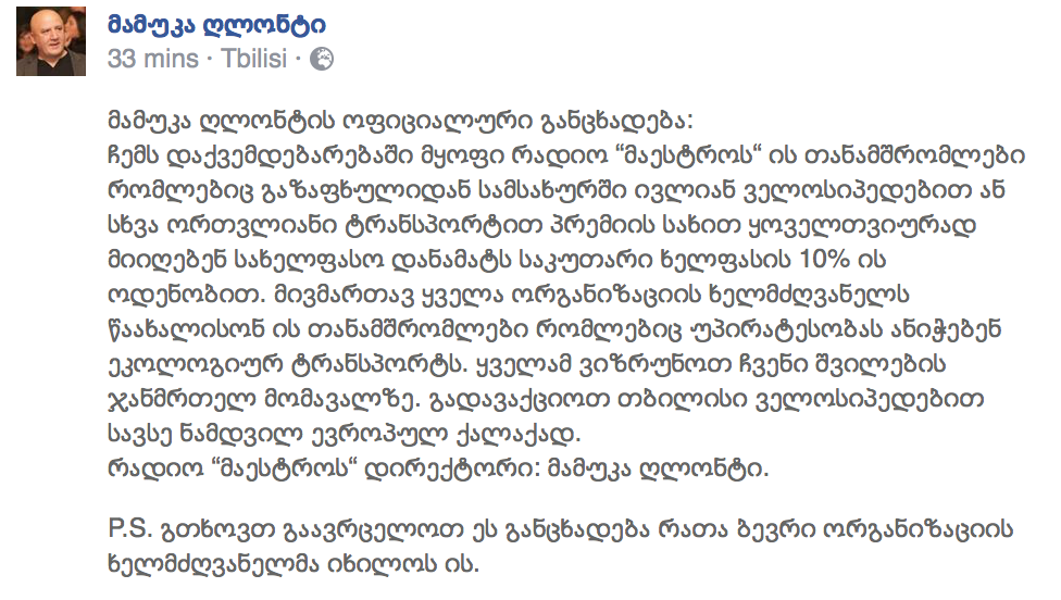 მამუკა ღლონტის განცხადებას ავრცელებს,
