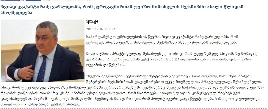 გადაწყვეტილება, შეჩერების მექანიზმზე, მიღებულია -, ვიზების ლიბერალიზაციასთან კავშირშია