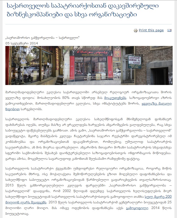 1. საქართველოს საპატრიარქოს ბიზნესკომპანიები
