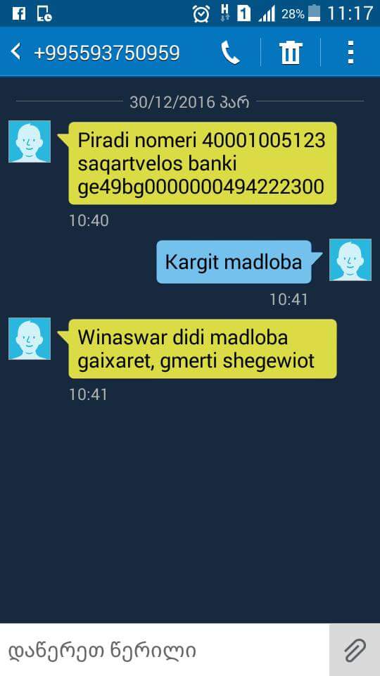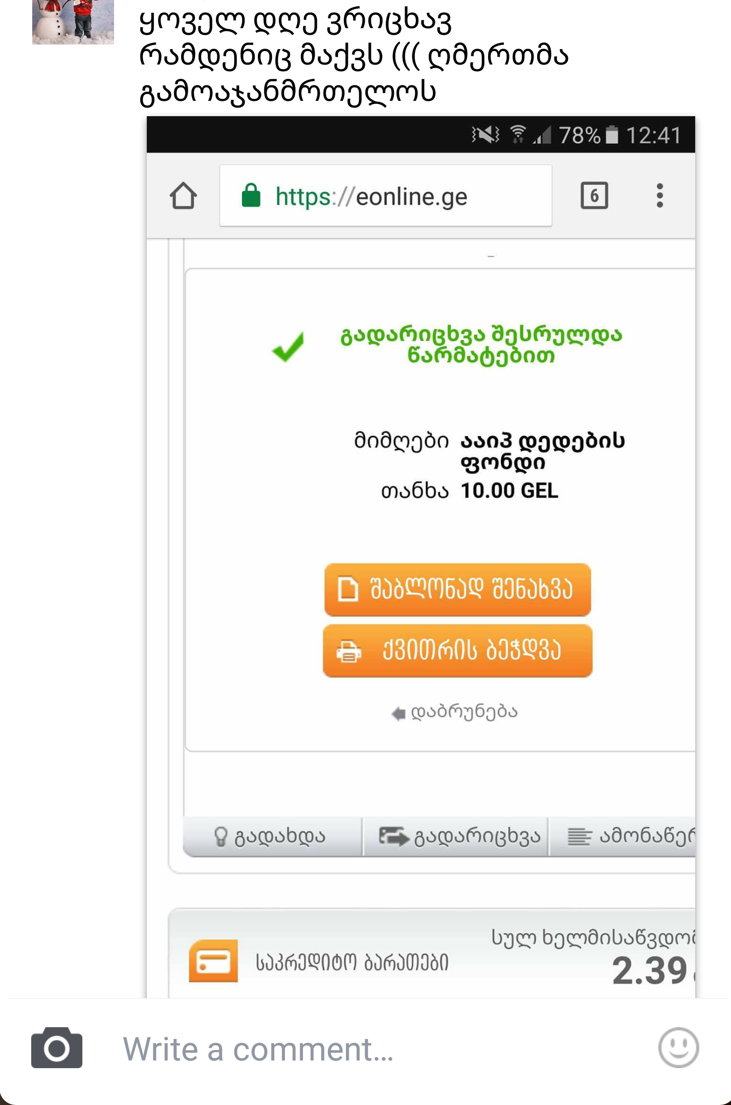 GoGoNNaშენი ფაცებოოკ პროფილი ვნახე და აქ რო გვიზიარებ ამ სამწუხარო ამბავს. რატომ შენს ფეისბუქ გვერდზე არ გაქ გაზიარებული. ამდა ზემოდ ჩამოთვლილ კითხვებზე თუ არ უპასუხებ. სუსის ანტიკორუფციული სააგენტო დაინტერესდება. ამ განცხადებით და მაგ დედების ფონდით მათ ანგარიშზე ჩარიცხული თანხები დღემდე სად წავიდა და ვის მოხმარდა. უპასუხე კითხვებს და თუ ყველაფერი მართალი აღმოჩნდება პირობას ვდებს 1 საათში გიპოვი ადამიანს ნაცნობობის გამოყენებით რომელიც მკურნალობის ნახევარ თანხას სრულად დააფინანსებს. აქვე ვდებ პირობას ეს თუ მართალი აღმოჩნდა ნებისმიერი ფორუმელი შენი ჩათვლით გამომყვეს და უყუროს როგორ ჩაირიცხება ფული