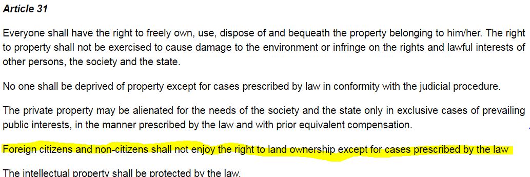 სომხეთის კონსტიტუცია მუხლი 31 თავი მეოთხე, მიწის ფლობაზე