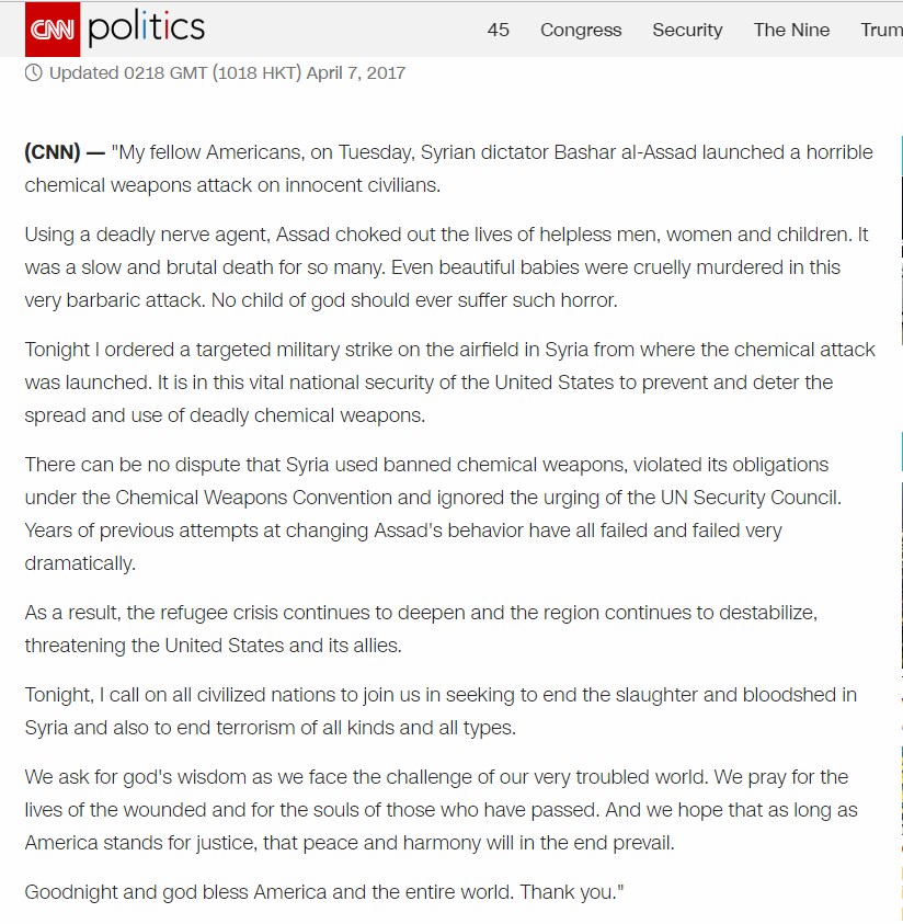 ცინცხალი - ტრამპმა ასადის ბაზას დასცხო
