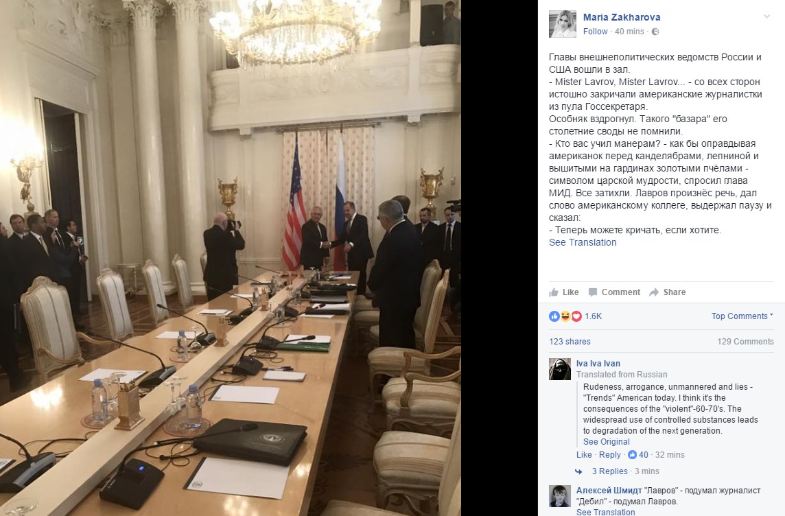 ლავროვმა პროტოკოლით გათვლისწინებული მისალმება წარმოთქვა და სიტყვა გადასცა ტილერსონს, მცირე პაუზის შემდეგ კი ჟურნალისტებს მიმართა: "ახლა შეგიძლიათ იყვიროთ..."