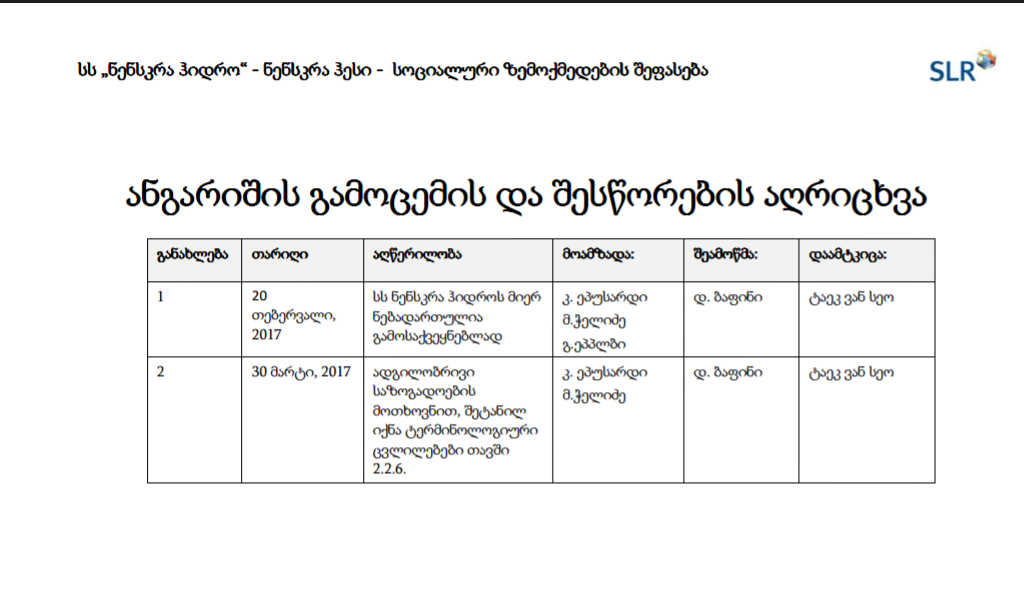 შეფასების ანგარიში ეფუძნება ნენსკრა ჰესის