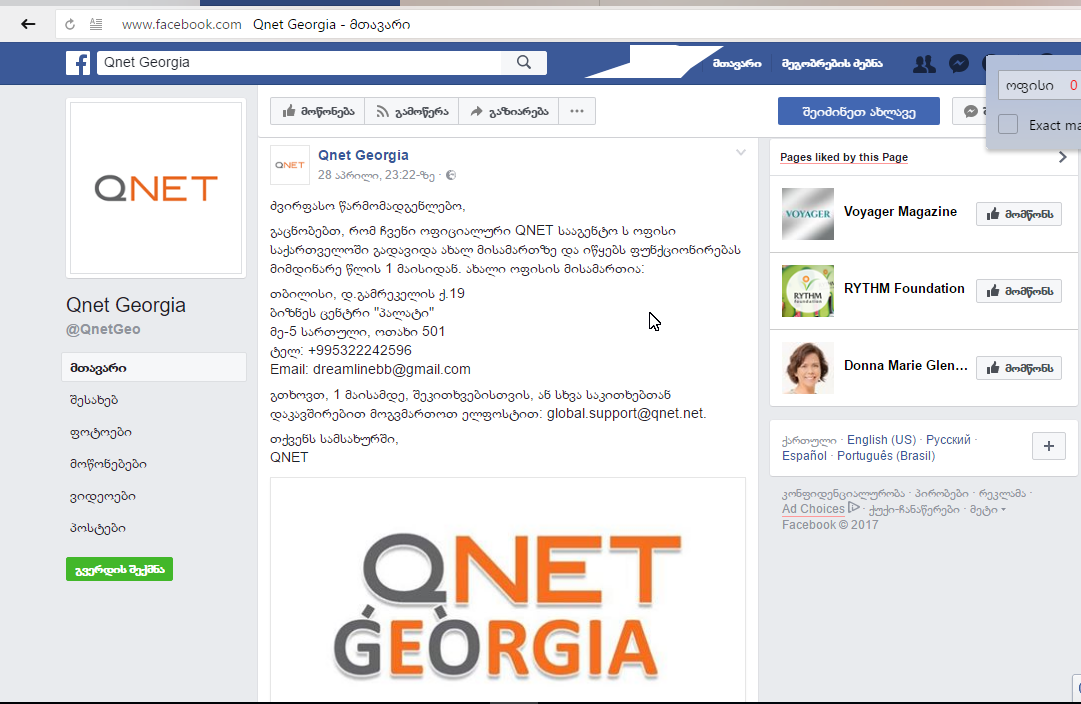 კიდევ ერთხელ მტკიცებულებები სრულად:ქიუნეტის საიტსა და ფეისბუქ გვერზე განთაvსებული ინფორმაცია ოფისის მისამართის შეცვლის შესახებ.
