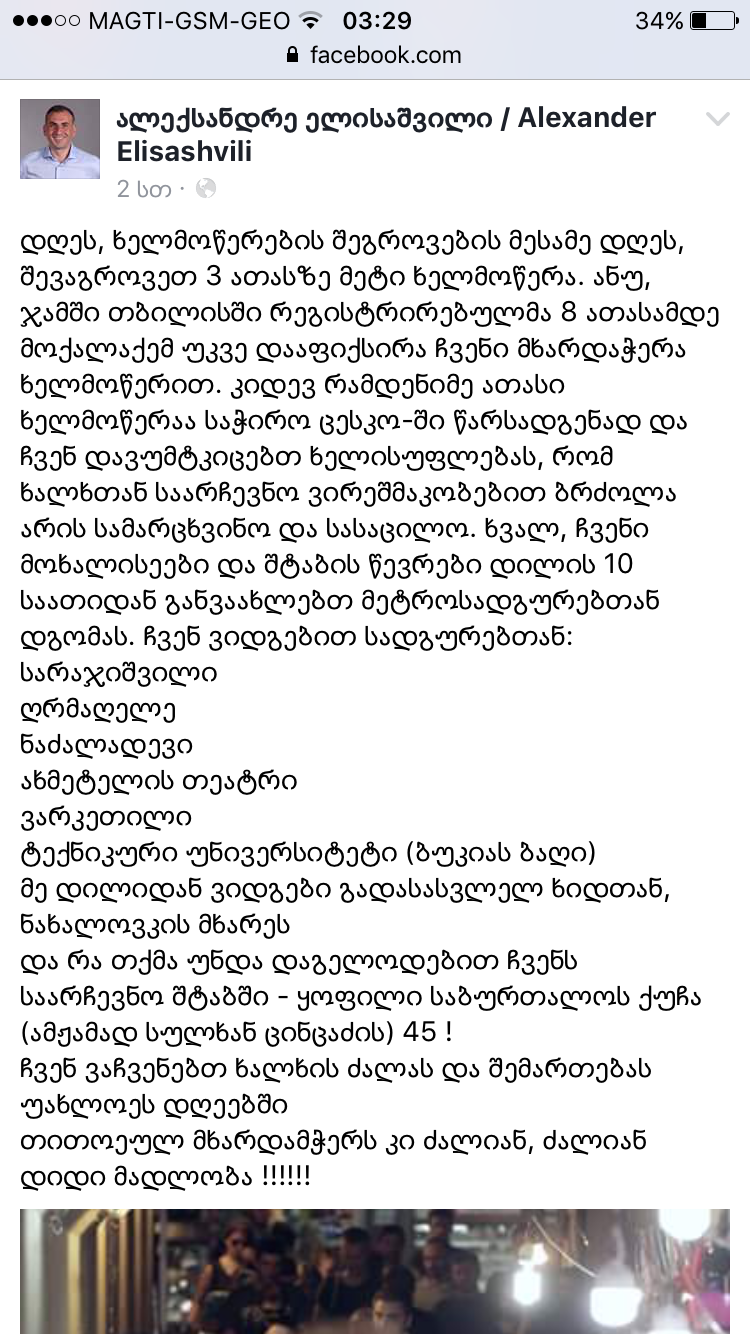ცესკომ კვირაში 10000 ხელმოწერის შეგროვება, მოითხოვა. ელისაშვილი: ეს უსამართლოა