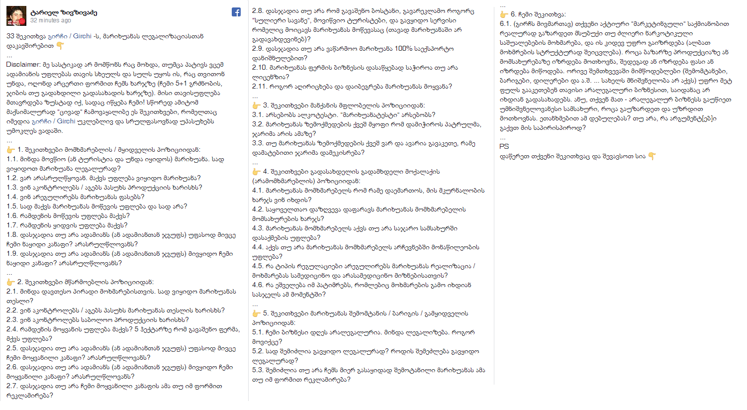 33 შეკითხვა "გირჩს" მარიხუანას ლეგალიზაციაზე, რეალუად ბარიგებისთვის გაწეული სამსახური