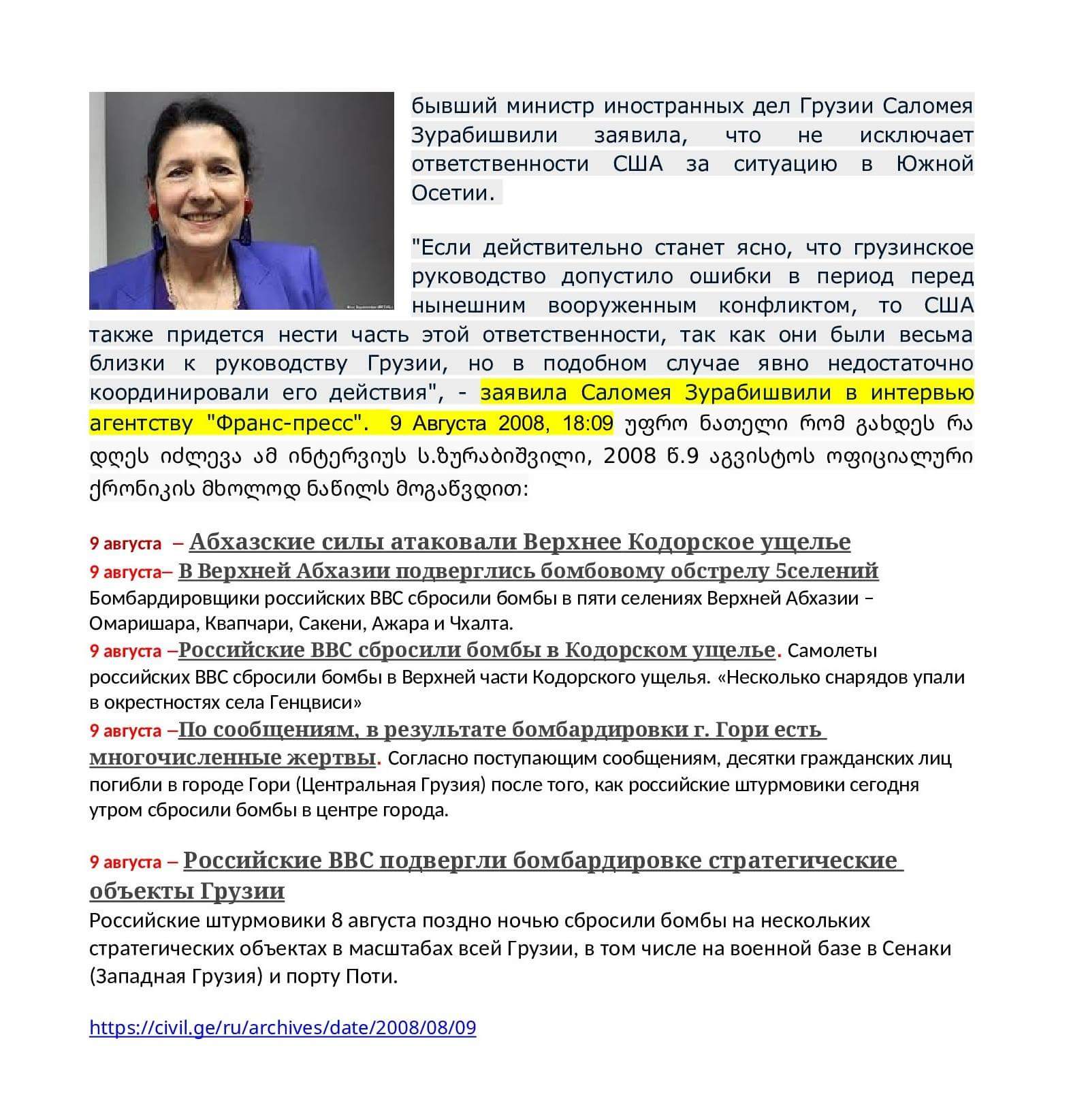 23.20. Грузинские власти информируют помощника заместителя госсекретаря США Мэттью Брайза, что у них не остается выбора, кроме как атаковать “вооруженных людей и технику”, проникших на территорию Грузии через Рокский тоннель.
