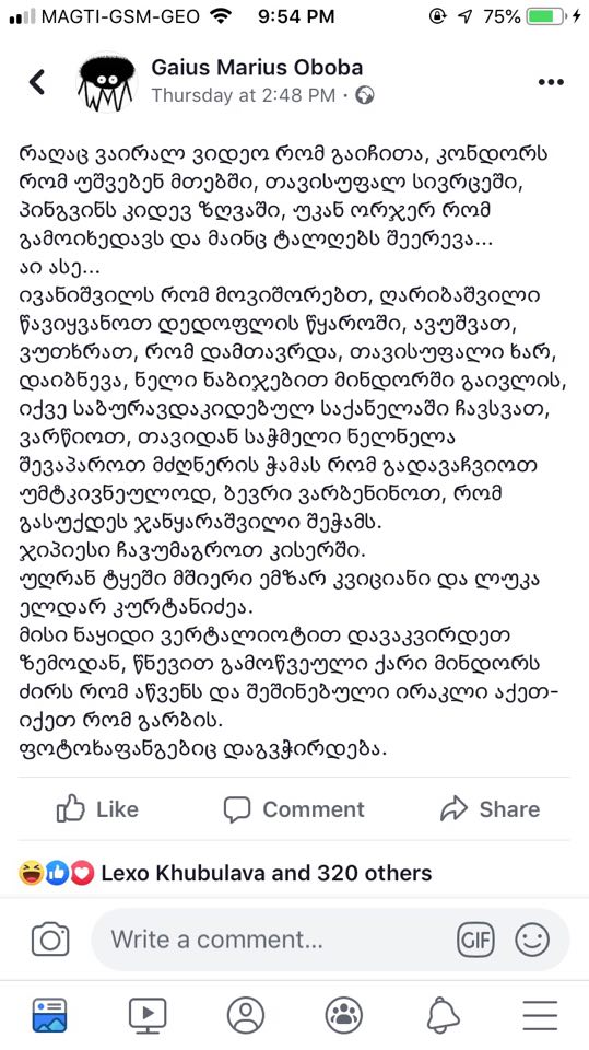 გაგვიპრავე ერთი აგი. არადა გენდე რო თქვი, ვიფიქრე იცის ეს ამბავი თქო და ეგრე იქნება ტქო. ეხლა ორი ამბავია: ან არ იცოდი, რაც შენი დაბალი დაშვებადობის და გარე წრეში ყოფნის ამბავია, ან, იცოდი და მოგვატყუე აქ შენდამი ნდობით განსჭვალული პირები.