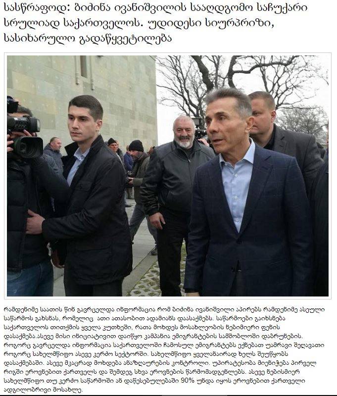 "დიდი სიხარული საქართველოს მოსახლეობას", "ახლახანს გავცელდა სასიამოვნი ინფორმაცია "
