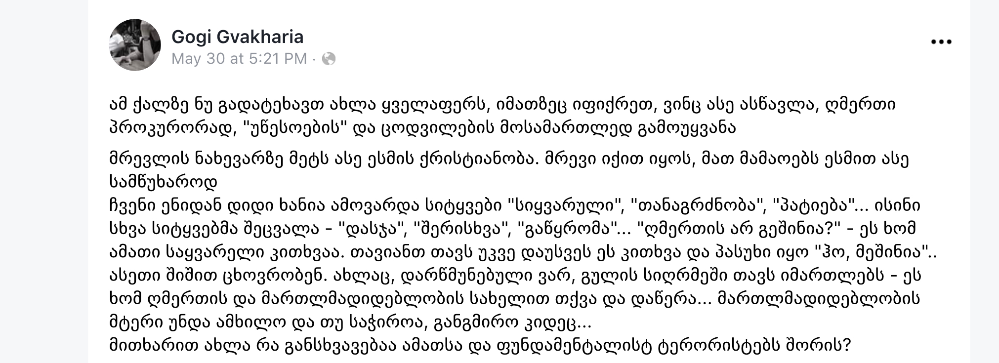 „ქართული ოცნების“ დეპუტატი ბლოგერს დის, გარდაცვალების გამო ნიშნის მოგებით მიმართავს