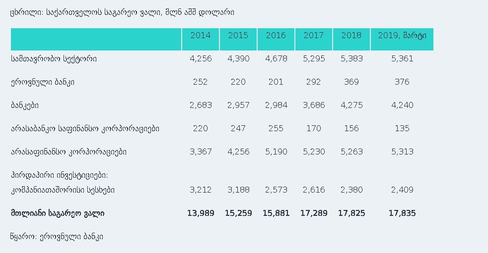 საქართველოს საგარეო ვალი 17.8 მილიარდი დოლარია