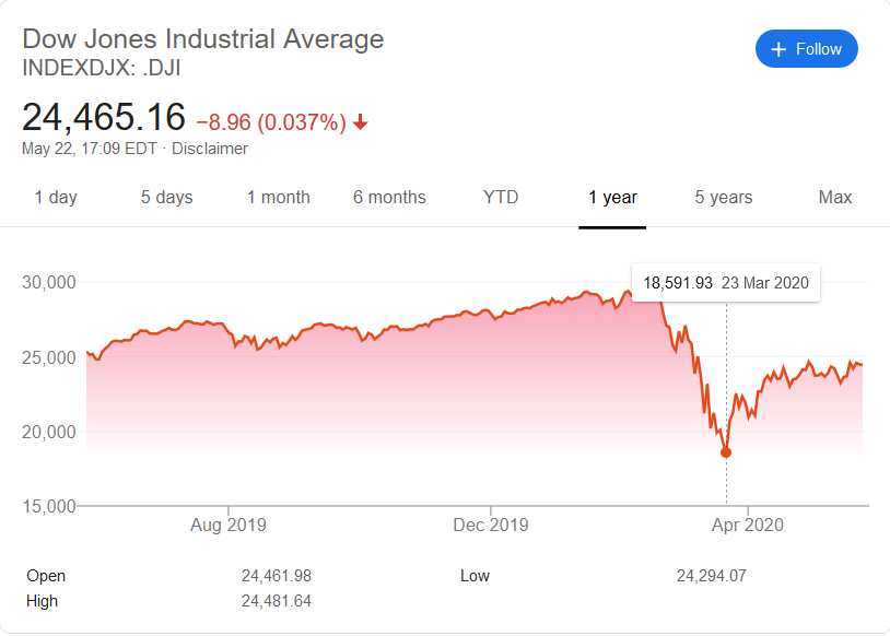 შედარება შეიძლება დოუ ჯონსის ინდექსით, რომლითაც ითვლებ, წამყვანი 30 ამერიკული კომპანიის ღირებულება. ეს ინდექსი მეტყველებს იმას, რასაც უკვე მეორე პოსტში გიმეორებ, მილიარდერები გამდიდრდნენ 2 თვის წინანდელთან შედარებით, როდესაც პანდემიამ გააღარიბა, თუმცა დღეს მაინც უფრო ღარიბები არიან, ვიდრე პანდემიამდე იყვნენ.