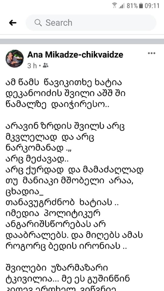 ფორუმელი საფრთხეშია და მიმართავს ყველას დაცვისთვის, ანამიჩის მიმართვა