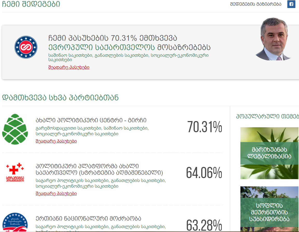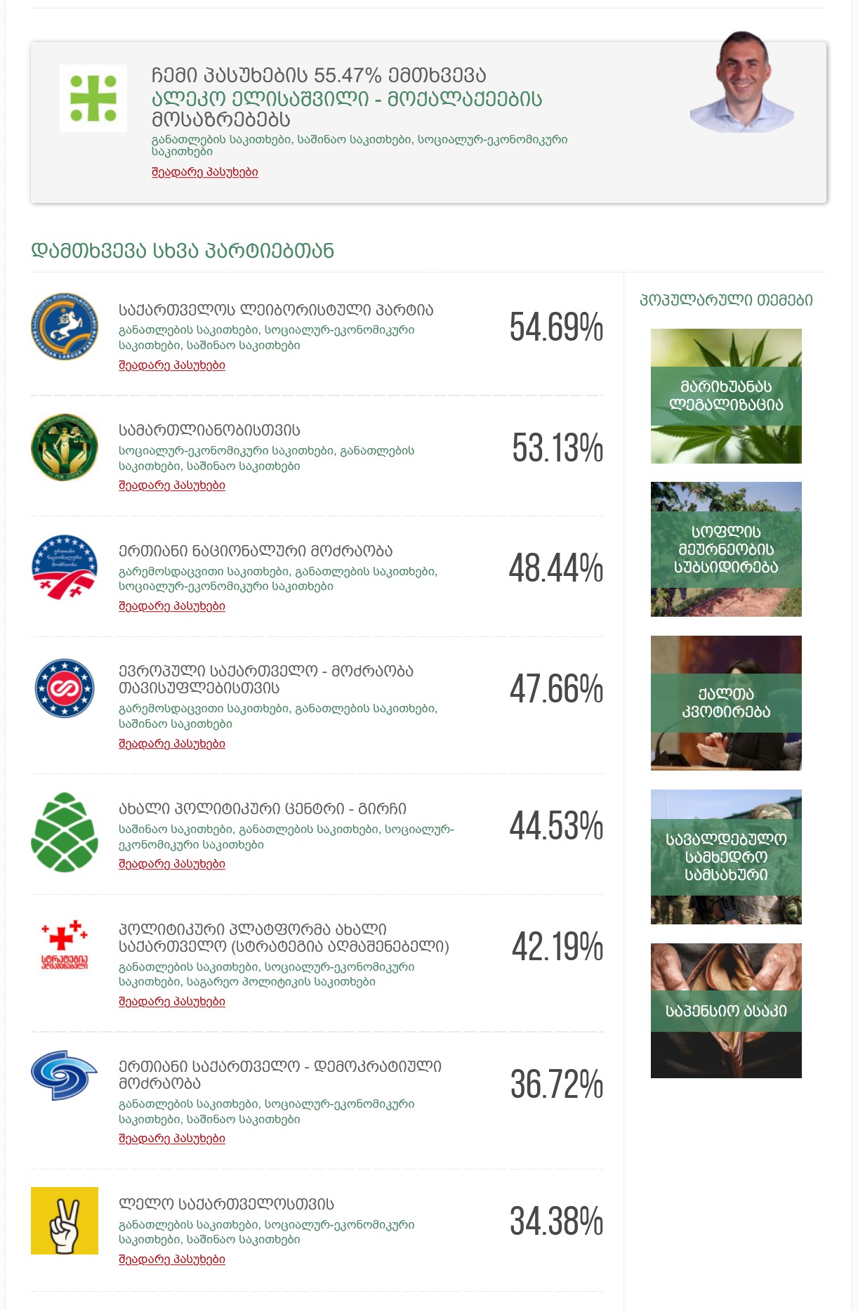 იპოვე შენი პარტია 2020 წლის პარლამენტის არჩევნებისთვის, შეავსე კითხვარი