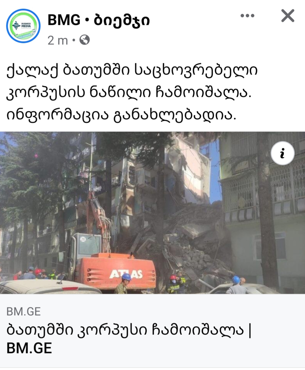 ბათუმში კორპუსის ნაწილი ჩამოინგრა,