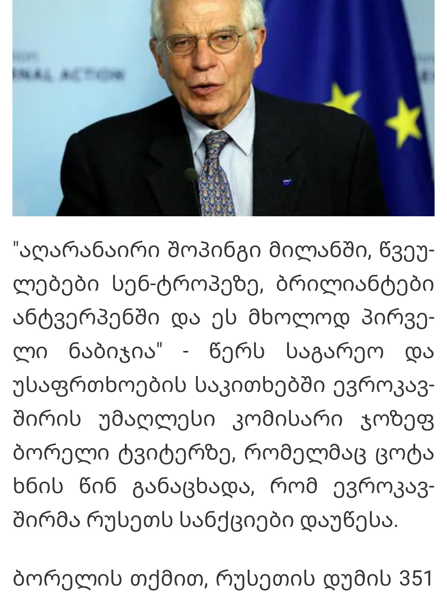 ნაბიჭვრული ხოდი გააკეთა მოკლედ რა ბებერმა ნაბიჭვარმა, სამხედრო ძალიათ არაფერს ვიზამთო , მარტო იდიოტური სანქციებიო თან ისეო რომ ჩვენი თავი არ დავაზარალოთო