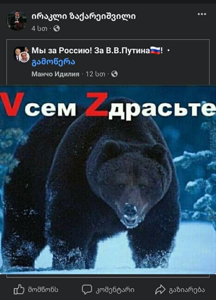 https://www.facebook.com/100080062162532/po...3558139049/?d=nრაც შეეხება ჩემს გამოსვლას ალტ-ინფოს ეთერში, რაც ხელოვნურად იქნა აი ამ ნაძირალა, "ფსევდო ეროვნული", ნაცმოძრაობასთან მოკურკურე ძმებ ელისოებისა და მათი თანამოაზრეების მიერ ტირაჟირებული და უარყოფით კონტექსტში წარმოდგენილი, მინდა სრულად დავადასტურო საკუთარი სიტყვები, იმდენად რამდენადაც ეს მე პირველად არ გამიჟღერებია, არც მე და არც ჩვენს თანამოაზრეებს და პარტიის წევრებს და არ ვაპირებთ რაიმე მოვლენის ან პიროვნების მძევლები ვიყოთ და გარკვეული კონიუნქტურის შიშით სიმართლე არ ვილაპარაკოთ, რადგან წარსულის სწორი გააზრება, გვაზღვევს სამომავლო შეცდომებისგან!..