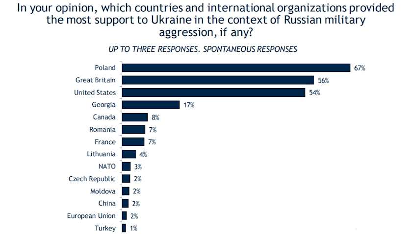 უკრაინაში IRI-მ გამოკითხა მოსახლეობა, დახმარების მხრივ საქართველო მეოთხეა