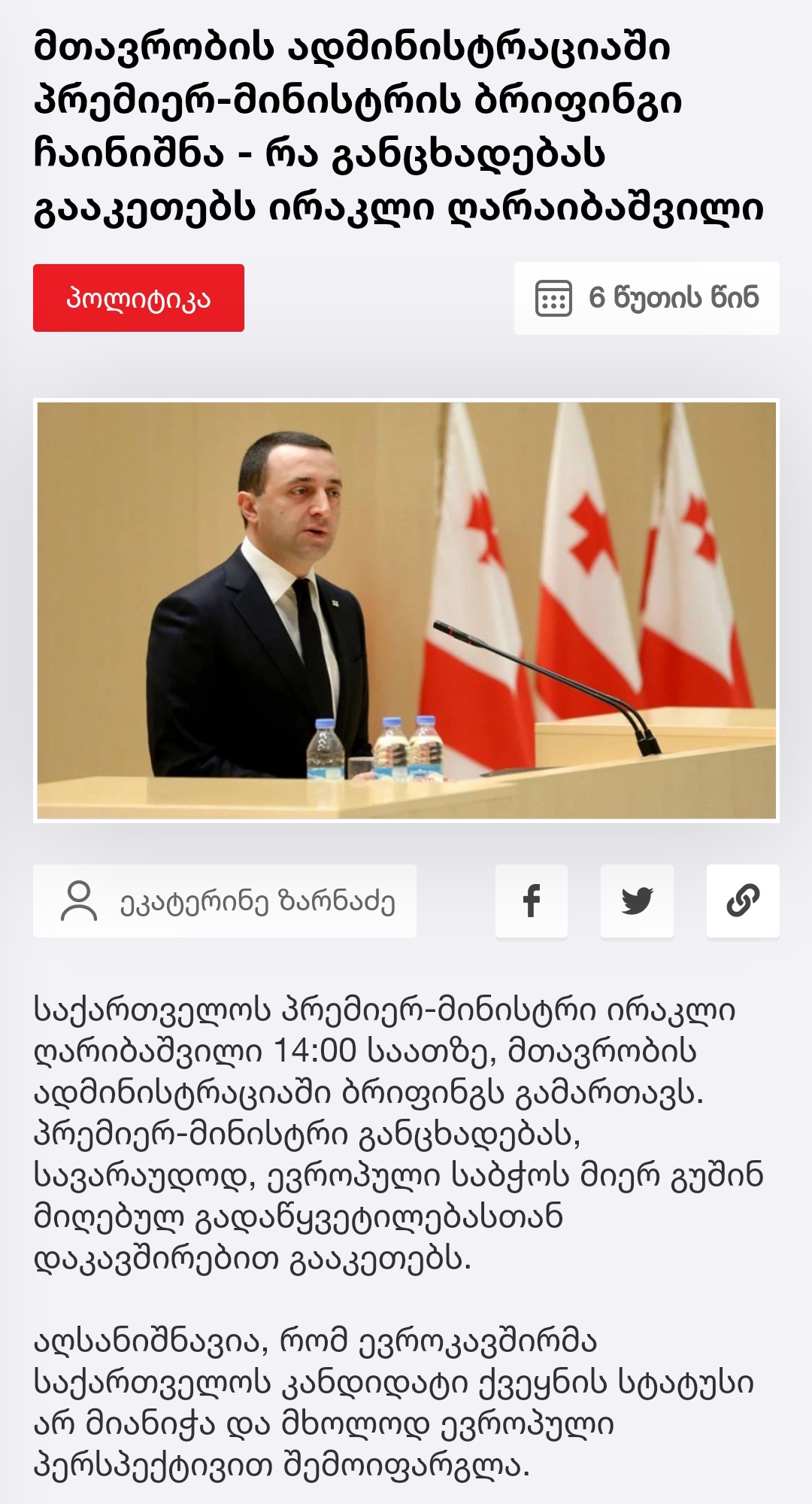 პრემიერი - ცეცხლით და მახვილით დავიცავთ, ჩვენი ქვეყნის და ხალხის მშვიდობას