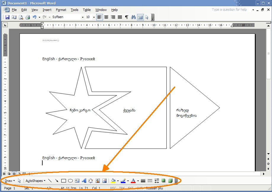 ჩართე Drawing Toolbar და იქ Autoshapes-ში ნახავ სხვადასხვა ფიგურებს.
