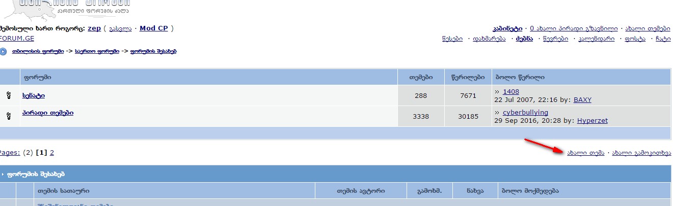კითხვები ფორუმის შესახებ (ხ.დ.კ.), F1 ნაწილი მესამე, შეკითხვები დასვით ამ თემაში