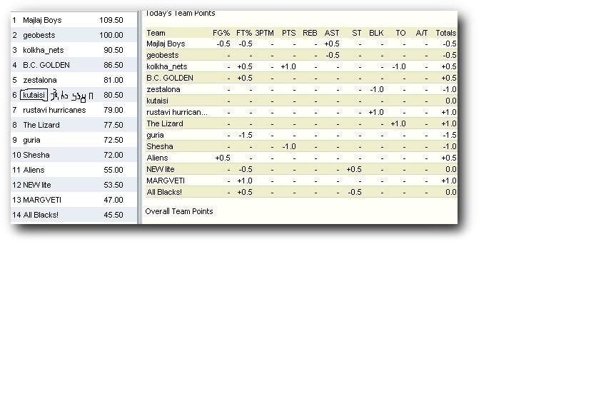 Yahoo Fantasy NBA, B დივიზიონი