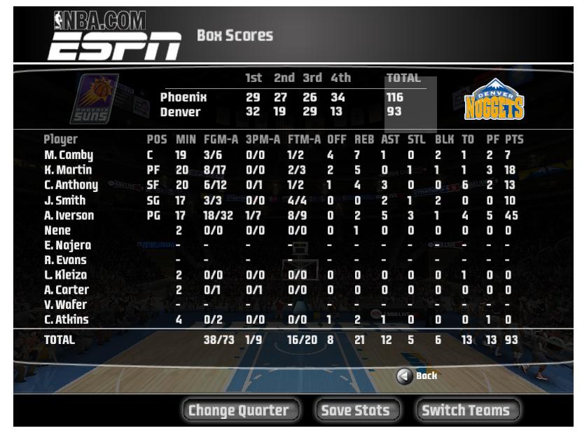 NBA LIVE 2008, ცხრილები,ურთიერთშეხვედრები და ა.შ.