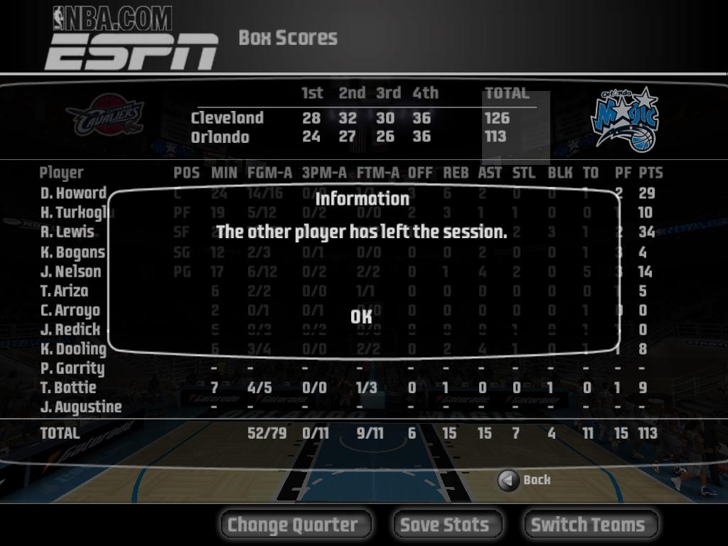 NBA LIVE 2008, ცხრილები,ურთიერთშეხვედრები და ა.შ.