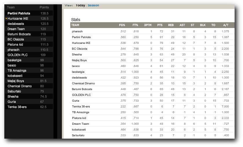 საკვალიფიკაციო LIGA B, Yahoo Fantasy NBA