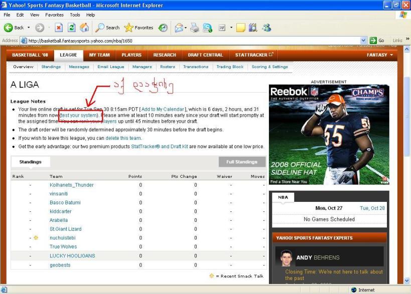 საკვალიფიკაციო LIGA B, Yahoo Fantasy NBA