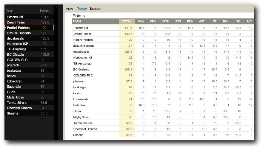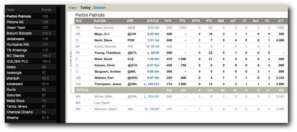 საკვალიფიკაციო LIGA B, Yahoo Fantasy NBA