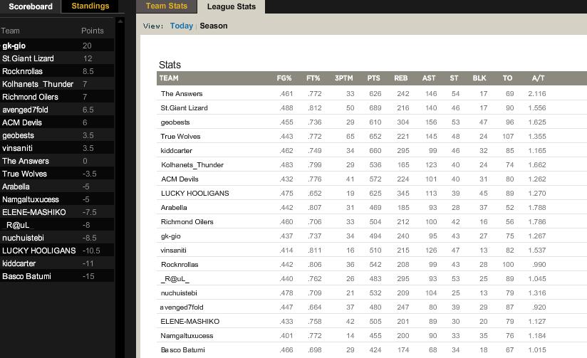 საკვალიფიკაციო LIGA A, Yahoo Fantasy NBA ნაწილი მე-2