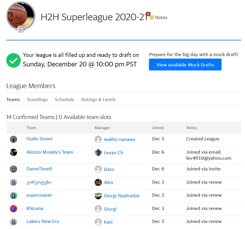 YAHOO NBA FANTASY HEAD TO HEAD LEAGUE!
