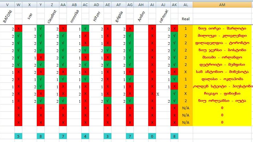 რომელიღაც დასაწყისშივე გამომრჩა იმიტომ რომ იუტას ორიანი მეწერა ... Fუ ბლინ რაა ... ნოუთბუქით აღარ დავპოსტავ პროგნოზებს