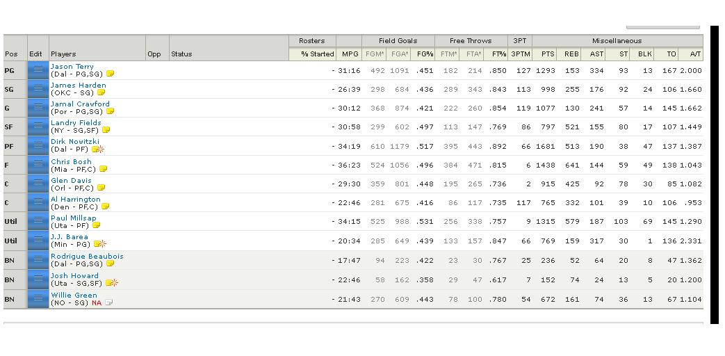 Fantasy Yahoo NBA - BOX GE League, სიმბოლური საპრიზო ფონდით